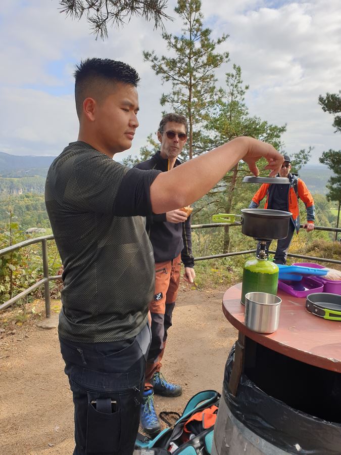 Mittagspause auf dem Rauenstein... Da kann sich Viet Anh schonmal ein Teechen kochen!