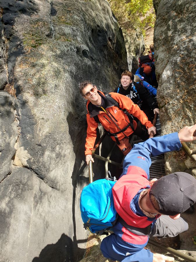 Am Samstag, den 16.10., ging es für ein paar wanderlustige Vereinsmitglieder in die Sächsische Schweiz! Start war in Wehlen. Wir erkundeten die Gegend von Pötzscha -Kleiner Bärenstein- bis zum Rauenstein. Die Strecke von ca. 7,8 km, mit einem Gesamtanstieg von 330m, begann etwas matschig..., das regelte sich aber schnell wieder und die Sonne zeigte uns ihre volle Unterstützung.