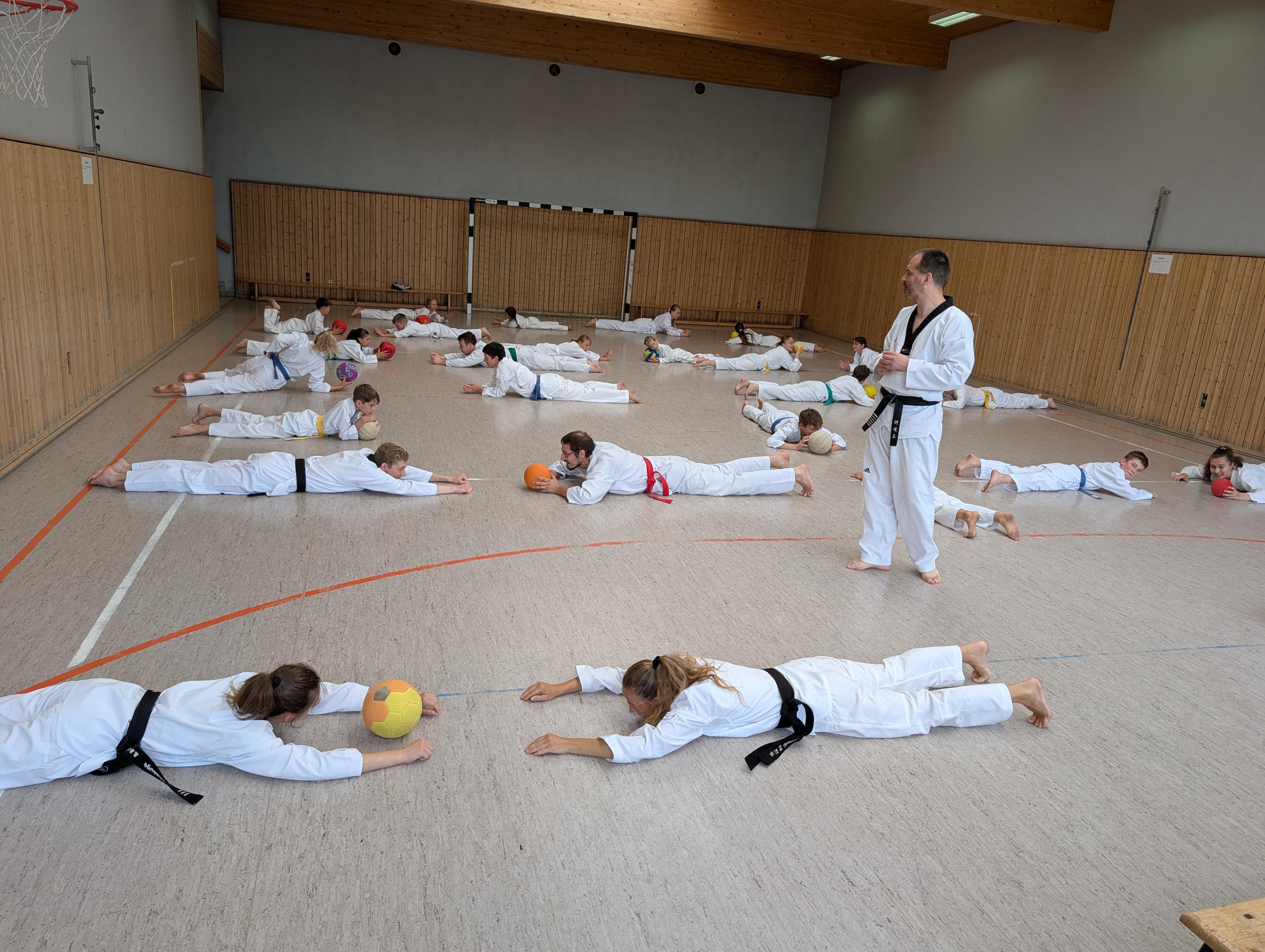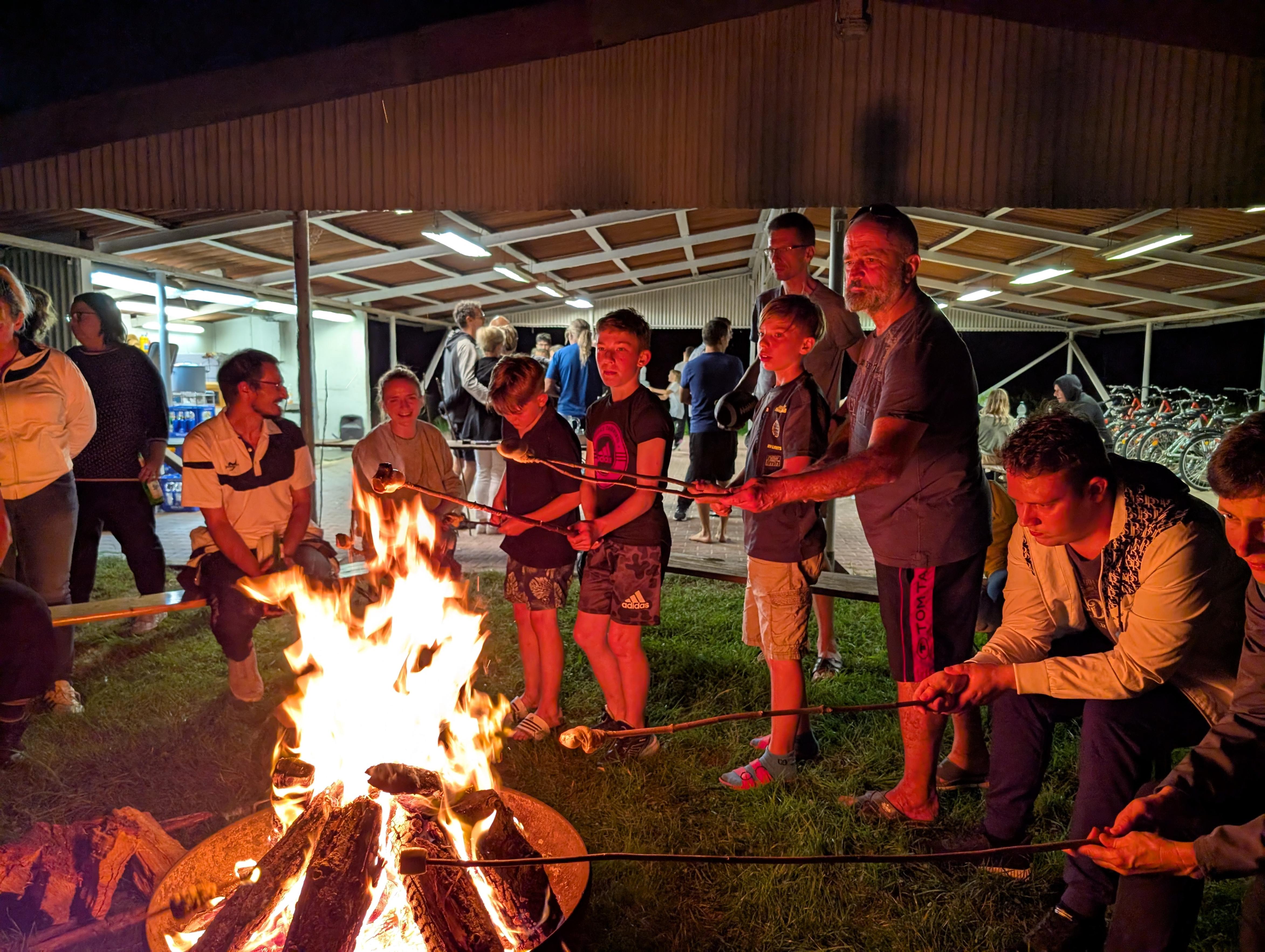 Am Samstag ging es mit einem lauten Pfiff durch die Herberge los: „Früüüüühsport“ hallt durch das Haus. Nach ein paar morgendlichen Stretch Übungen und einem energiereichen Frühstück startet das erste Training des Tages 10 Uhr in der Guttauer Turnhalle. Vereinschef Matthias quält unsere Sportler durch einen kreativen Parcour mit folgendem ausdauernden Pratzentraining. Wir kommen ordentlich ins Schwitzen! Doch das ist natürlich nicht alles, sonst wären wir ja nicht im Trainingslager. Nach dem Mittag folgen eine Fitnesseinheit und ein freiwilliges Training, in der die Sportler alles aus sich herausholen. Heute feiern wir auch Matthias seinen Geburtstag und lassen ihn hochleben! Der Abend klingt danach bei einem leckeren Grillerchen und Lagerfeuer aus.